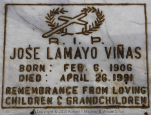 Grandmaster Jose (Joe) Lamayo Viñas was born February 6, 1906. He was the second son of Andres Viñas and born in Manapla, Negros Occidental. Grandmaster Joe is the founder of the Viñas Arnis Filipino Martial Art system which he officially started in 1932, and later in the early 1960s he founded the more well-known “Lapu Lapu” club in Bacolod, Negros Occidental. Grandmaster Joe was considered a “Kalaki”1, and believed and used anting-anting2 in addition to orasyon3. He was also a very religious man with his faith focused on Catholicism and firmly believed his skills were given to him by God. While he was an exceptional fighter his teaching methodologies were unorthodox for normal learning as he taught with no real patterns and with different movements than what was previously shown. Upon showing something, a student might ask to see it again, he would either refuse or show something different. Most learning from Grandmaster Joe felt his movements were “ad lib” or in the moment which was referred to as Oido4, “we-doe”. Upon his death in April 26, 1991 he had approximately 60 years of experience from when he founded the system in the City of Talisey, Barrio Concepcion Negros Occidental.